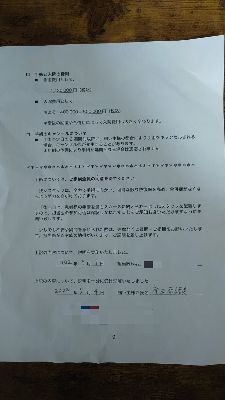 - 経過観察をしながら、7月12日 午前8時 より横浜市の動物病院で手術予定。