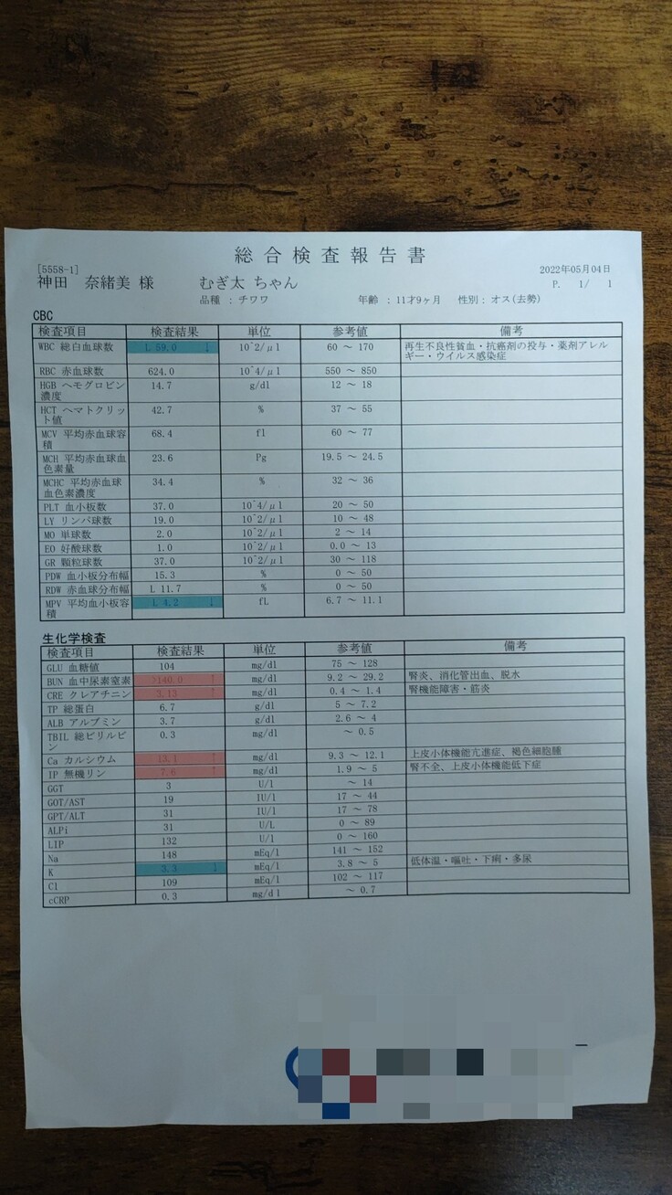 しかしこの病気も末期の状態、かつ、薬の影響で腎臓の数値もかなり悪くなり、