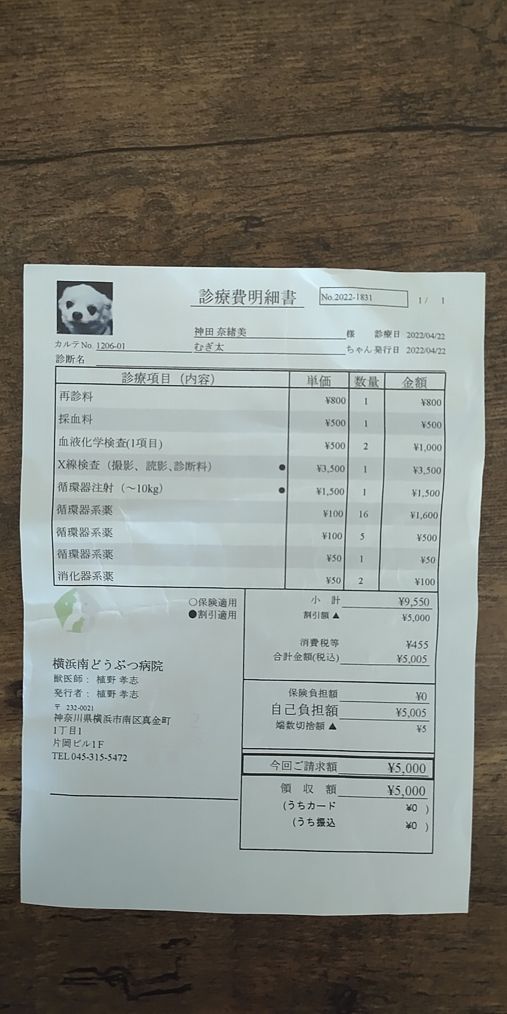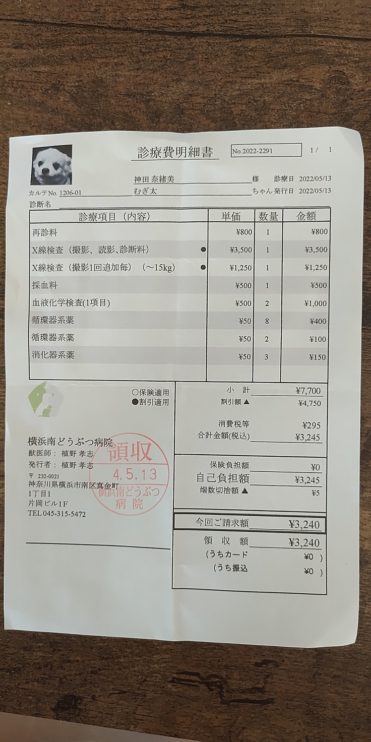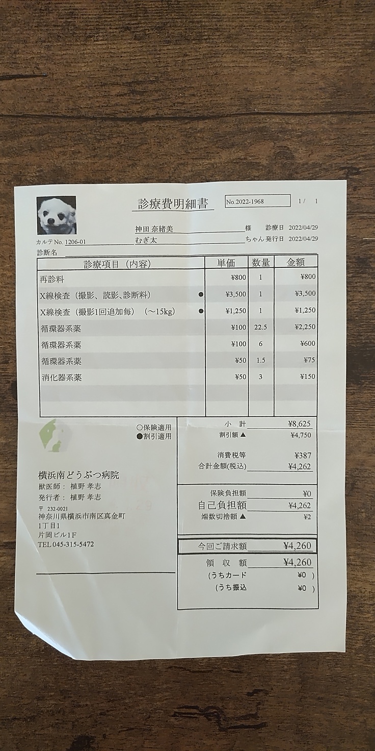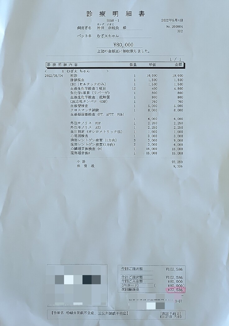 本来なら飼い主である私の責任で手術費用を賄うべきなのですが、情けない話しですが、この半年でむぎ太にかかった医療費に