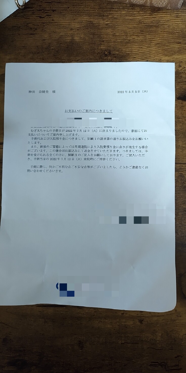 術後のむぎ太の医療費が捻出がむずかしい為。)