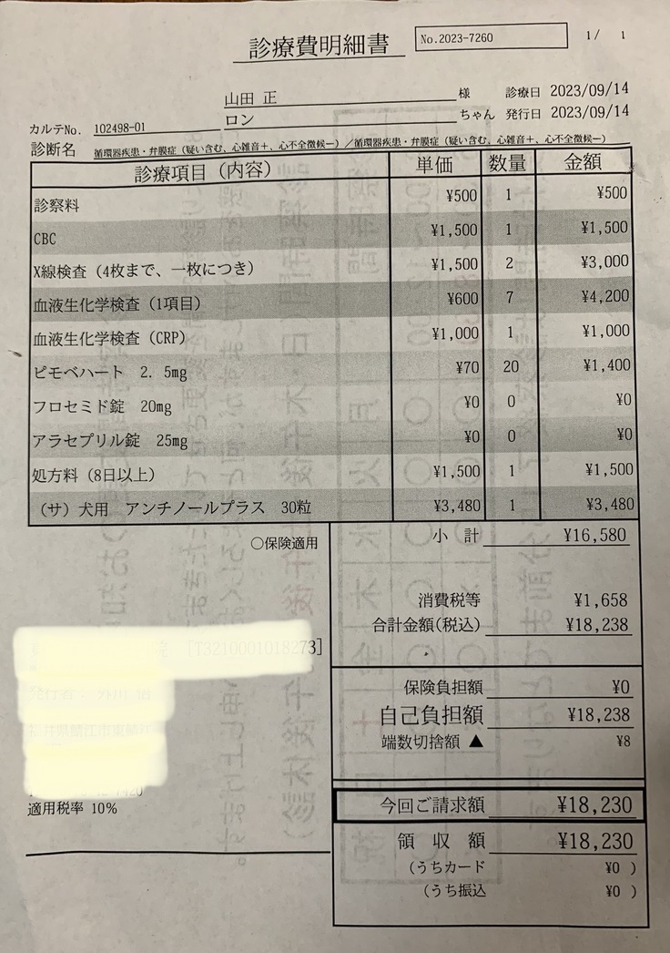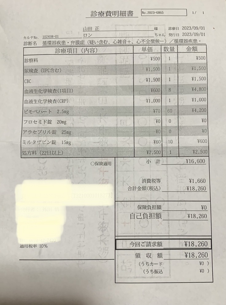 ロンに 僧帽弁閉鎖不全症治療のための、僧帽弁形成手術を受けさせます。手術費用は前払いとなり、9/28までに、自己資金で振り込みました。後日いただいた支援金で自己資金を補填します。