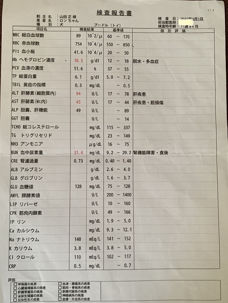 前回は 腎機能、肝疾患の数値が少し高かったのですが、次に検査した時には、腎機能の数値は戻っており、大きなブレは無いとの事でした。↓↓↓