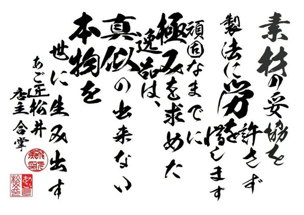 また、その中であごの新しい商品、オリジナルを開発することに喜びを感じます。この長崎県の歴史的伝統財産を残すため、今後も、失われた日本の伝統ある和食文化に欠かす事の出来ないあごの魅力を、世の中に広めていきます。