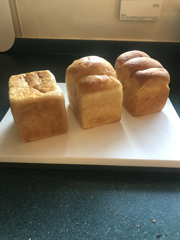 ▼販売予定のサイズにこだわり型から作った3種類の食パン