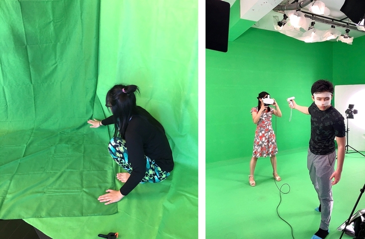 グリーンスクリーン撮影風景(左:ホームスタジオ、右:レンタルスタジオ)