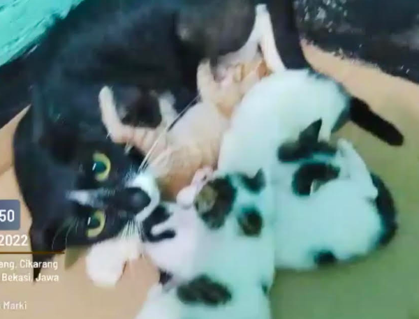 Cancan who got new born babies in Singalaja street was rescued into Cat House and now babies opened their eyes and started walking..