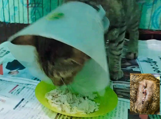 Having neutering operation, Eli chan got her wound worsening and then another operation at the clinic. Now she needs to wear Elizabeth Collar.