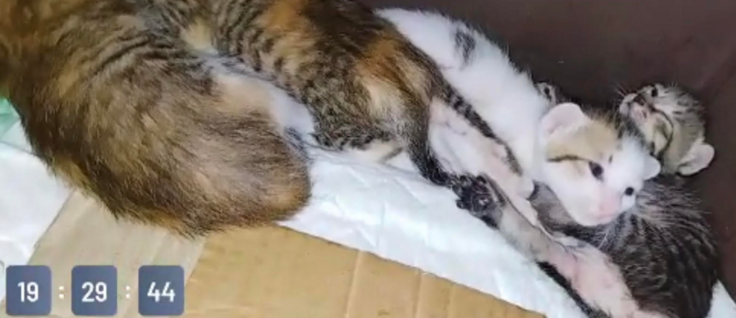 Young mother Natsu got seriously diseased with Corona and Giardia, though she has four new-born babies. She got hospitalized for two days and she has been able to eat alone now 4 days after.