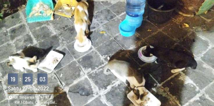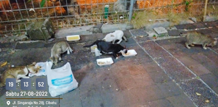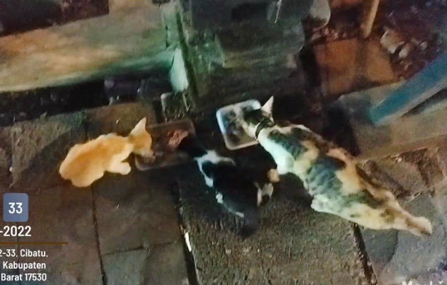 2.一月前に捨てられた子供たち(オピック、ヌニン、マルジョ、ユカ)ですが、大きくなってきています。今日も元気にご飯をもらっています。