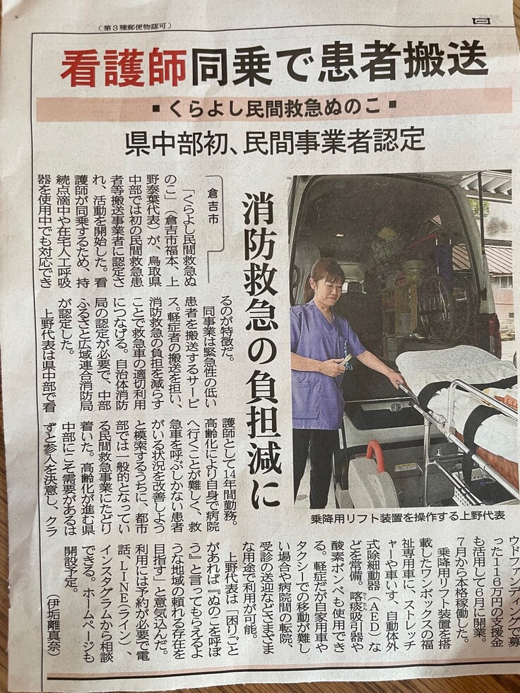 「くらよし民間救急ぬのこ」も少しずつ活動の幅を広げております。