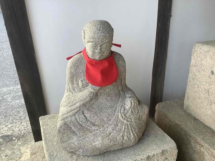 そんな中でお地蔵さまに赤い布でよだれかけを手作りしました。