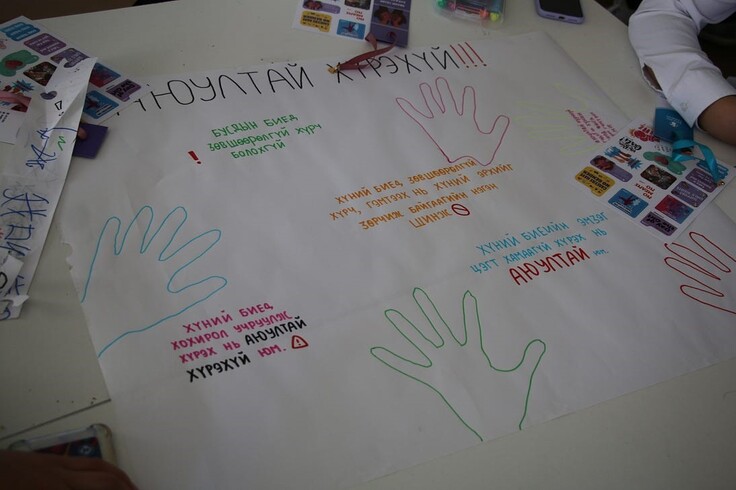 この目的のために、私たちのパートナー組織であるBeautiful Heartは、子供に優しいSMSコンテンツを開発するために、学校環境でのオンラインおよびオフラインのディスカッションに女の子を参加させました。3つの携帯電話事業者と協力して、女性と少女に対する暴力の防止と助けを求める方法について、テキストメッセージを3回送信しました。このSMSキャンペーンは、ウランバートルの高校生から農村部の遊牧民の少女まで、全国で347,000人以上の少女に届いています。