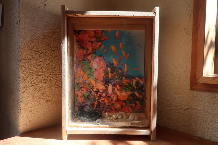 photo(水中写真家茂野優太[ハナダイ・ナンヨウイボヤギ 日本伊東)×水中箱メガネ(アンティーク昭和)+やどかりちゃん