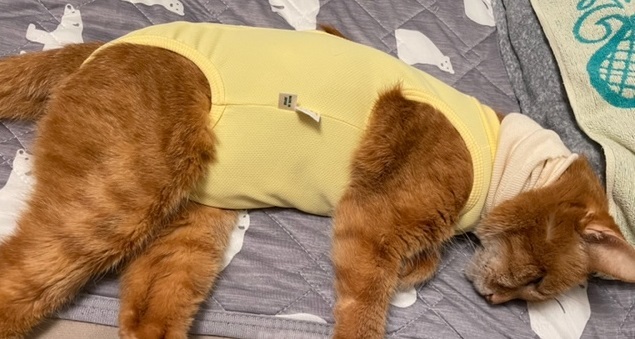 (6/5 手術後・首からの流動食・投薬中のむぎ)