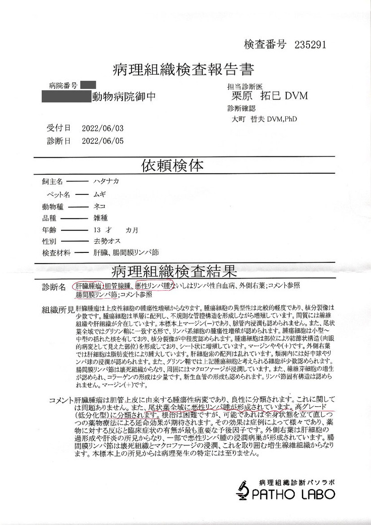 肝臓に腫瘍がある・・・ということで手術するも、病理検査で重い病気が判明します。