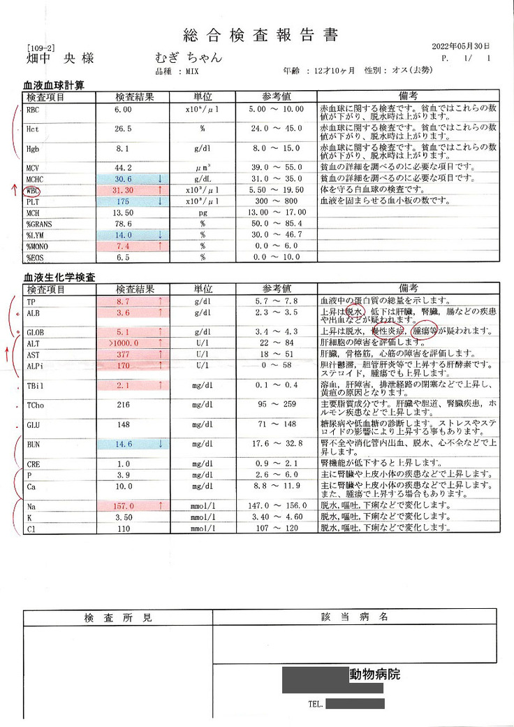 そんなむぎが今度は年を取り、ある時から食欲が落ちていることに気づき検査へ。