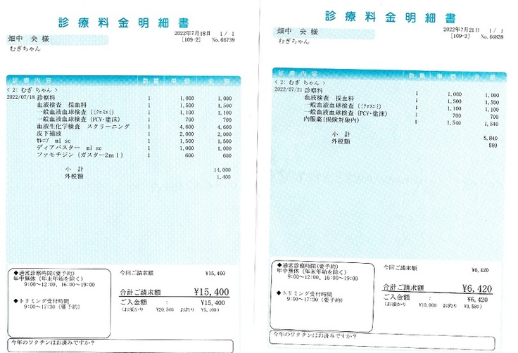 点滴から3~4日間ほど、嘔吐・下痢・食欲不振が見られました。