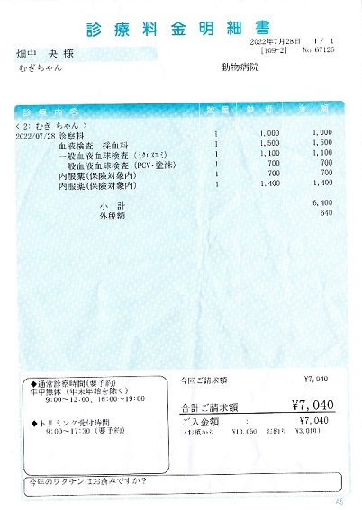 本人は食欲もあり移動などは普通にするため、結果として経過を観察することにしました。