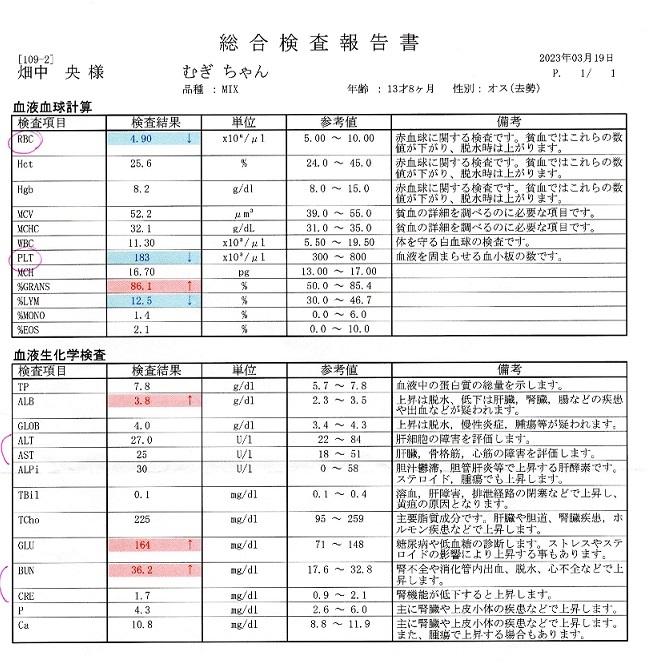 今月もロムスチンを投与し、経過観察中です。血液検査も大きく変動はなし。