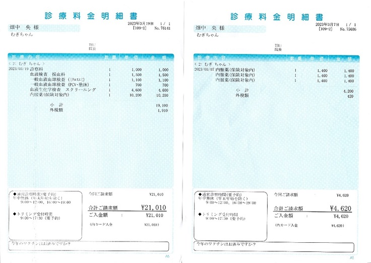 (※ロムスチンとは別に毎週投薬で4620円×4~5かかっております。全部載せると多いので基本1枚)