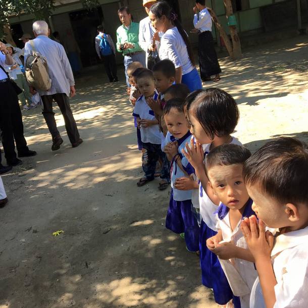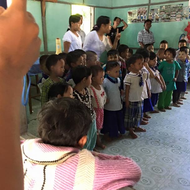 山の奥の奥 バガンと言うところの少数民族ザヤマ小学校です。日本人はきっとテレビでしか見ないような村です。粘土を練ったような泥の道 ガタガタ その上埃だらけ、息も出来ないような悪路をただひたすら走り続け、着いた時には胃がひっくり返り立っているのがやっとでした。