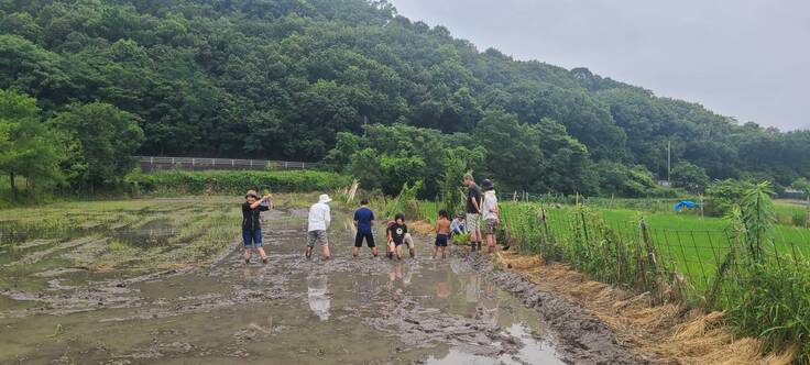 小豆島の自然農法農家『タネむすび堂農園」のご協力をいただいて田植えを体験しました。