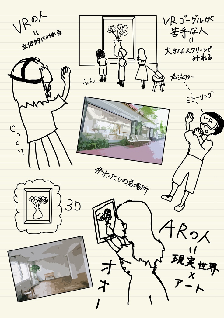 現在は「#わたしの居場所」をテーマに個性的なVRアート作品をつくっています。新しい発見と失敗を繰り返しながら試行錯誤しながら進めています。当事者と職員(健常者)という垣根を超えて活き活きしてる姿に大きな可能性を感じています。