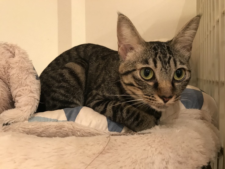 センターから来たSちゃんというキジトラの女の子は人懐っこくて、お客様のお膝にも乗る子で人気者でした。