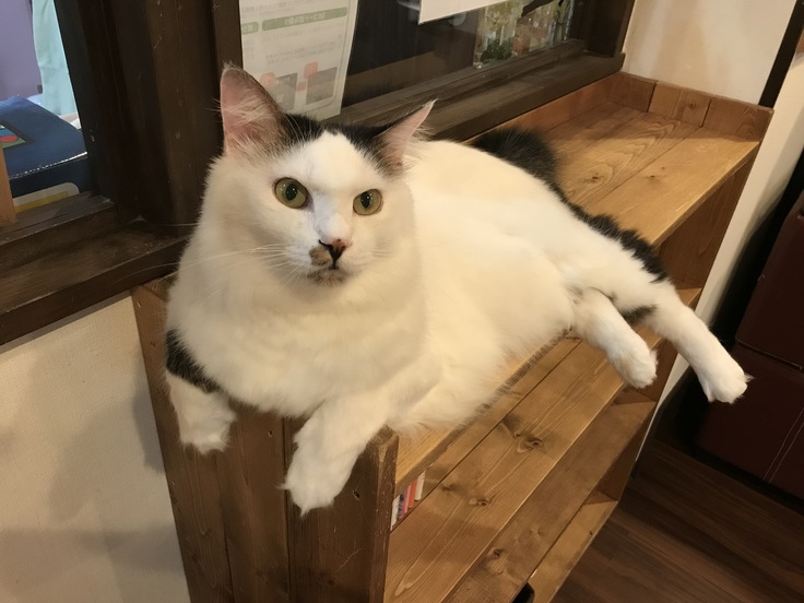 飼い主様のご意向により兄妹2匹一緒に貰ってくださる方を探しましたが、2匹一緒というのは子猫といえどもハードルが高く、なかなかお声が掛かりませんでした。1歳になった時、2匹一緒というのは難しいと判断し、リアンのレギュラー猫として引き受けることにしました。