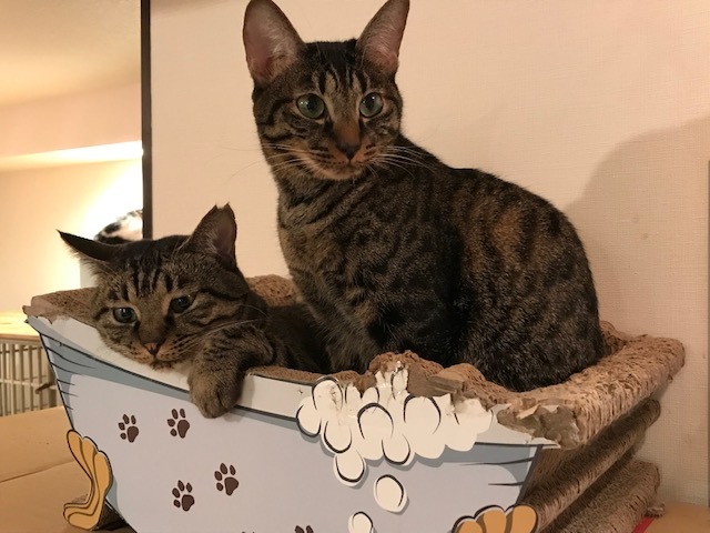 今では、オスのタロウは猫店長、メスのハナは営業部長として頑張ってくれています。