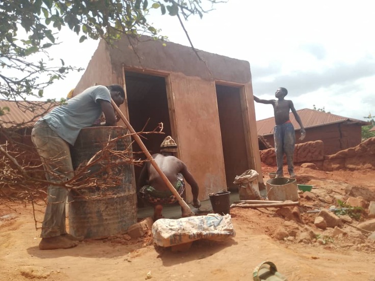 週末から職人が集まりトイレの完成にむけて作業が再開しました。