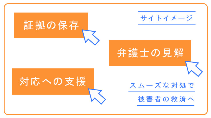 ・証拠の保存機能(スクリーンショット、URL等、裁判に必要な情報をサーバーに保存)