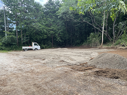 行動が早いのが住谷建築の良い所。その行動力を活かしてお借りできる事が決まったその日から、雑草だらけの森の開拓がスタート。僅か2週間で荒れ果てた森がこんなにスッキリと!