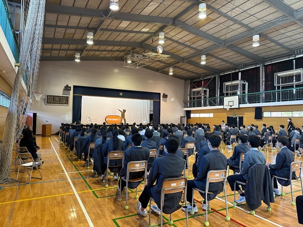 今週は大都会、目黒区の中学校で公演を実施しました。今回も生徒さん、先生方にとても喜んでいただきました。九州の教育大学ご出身の先生が熊本県の学校に公演を紹介いただけるとのことで感謝申し上げます。