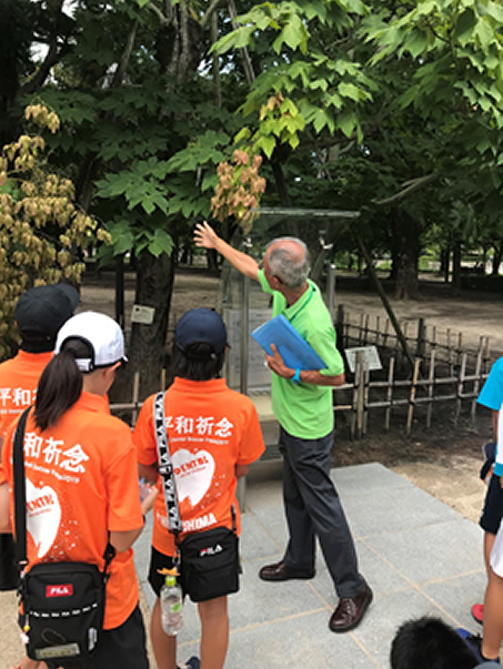 大会では毎回平和学習が組み込まれており、原爆ドームを含む広島平和公園でのガイドによる説明ツアー、被爆者の手記の朗読会などで子供たちが平和と原爆被害の状況を学びました。