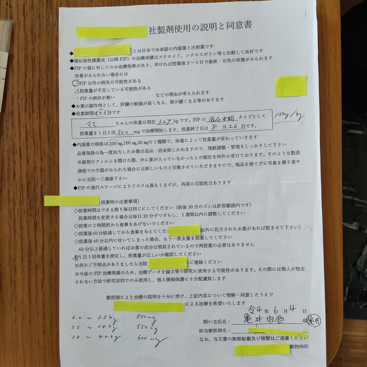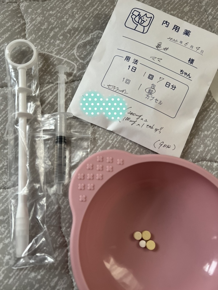 幸運にもネット検索すると自宅から車で30分という近くにFIP治療に力を入れてくれてる動物病院が見つかったのです。直ぐに予約を入れ6月4日投薬開始となったのです.