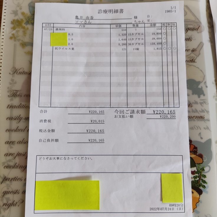 日本では.未承認の薬であり.保険適応外であることと海外からの新薬を輸入して使用するため..治療費用は実費で130万~150万ほどかかります。