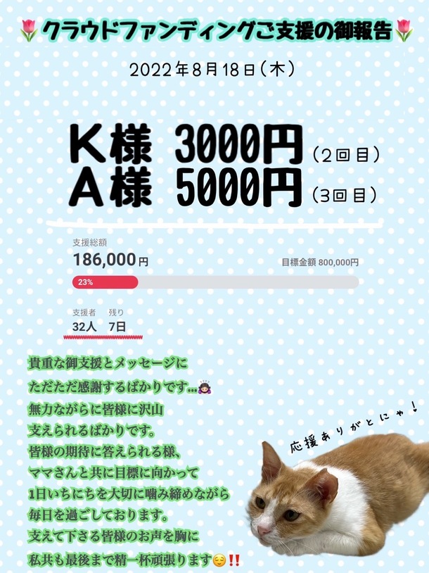 治療経過及び検査結果と..これまでの地域猫の様子はTwitterに掲載しておりますので..よろしければ是非ご覧になって下さい