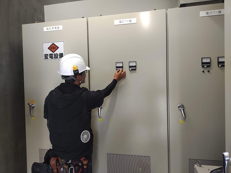 発電所や変電所というと、電力会社を思い浮かべると思いますが、主な仕事は大きい工場やビルにある受電設備や配線など、電気設備の保安監督という仕事に従事することが多いです。