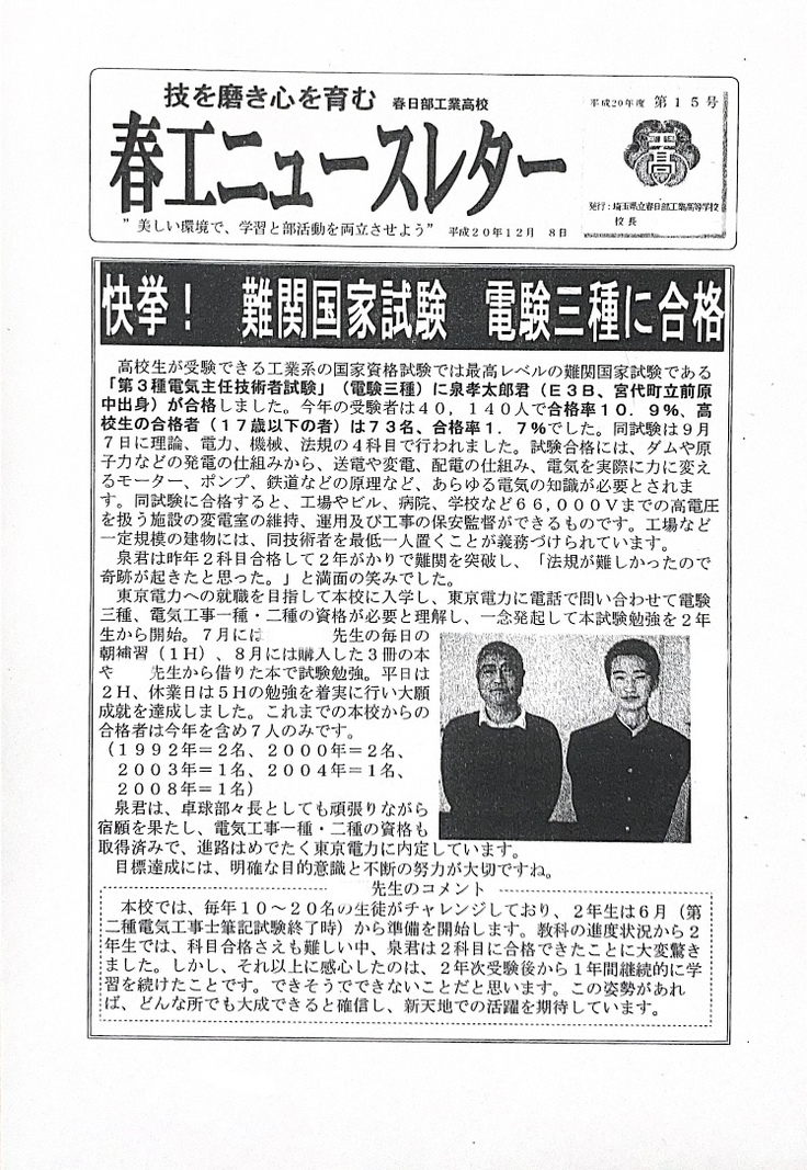 ※埼玉県立春日部工業高校より許諾を得て新聞を掲載しております。