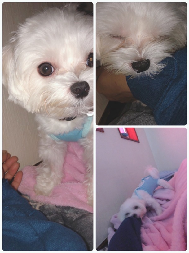先日 2度目の手術、退院後から 寝る前に必ず私の洋服の袖を噛みながら寝るレイ君😊