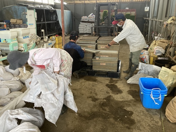5月18日の浸種より、総計100℃を超えまして、5月22日夕方苗箱に播種(種蒔き)をさせて頂きました。コシヒカリ、ササニシキ、亀の尾の三種類です。