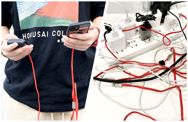 ケーブルが長すぎて絡めてしまってイライラ・・・モバイルバッテリーで充電する時のスマホ操作は意外と大変・・・充電したいのにケーブルがなかったり・・・