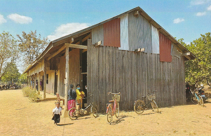 現行の校舎は写真の通りの状態で、トタン屋根の木造で大変古く、屋根や壁にも多くの穴や傷があり、雨の時には必ずと言っていいほど休校や授業中断になってしまいます。