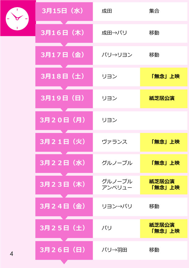 スケジュールは次のとおりです。できる限りFacebookを使いリアルタイムで報告します。