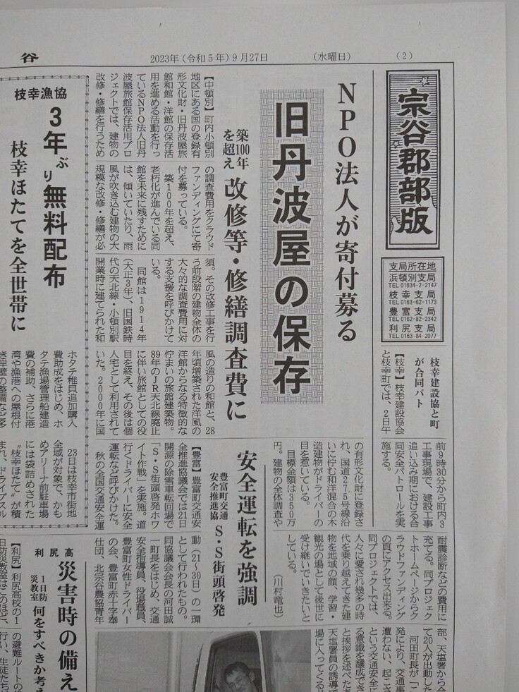 本日、新聞二誌に今回のクラウドファンディングについて、掲載いただきましたのでご報告いたします。