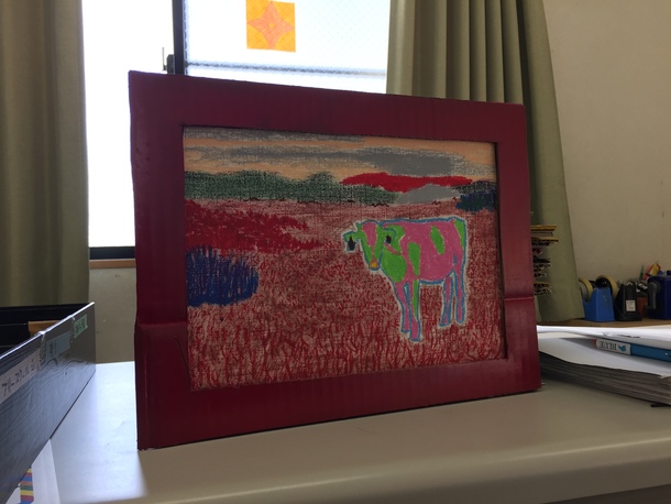 出来上がった額縁に、作品を入れてみます。