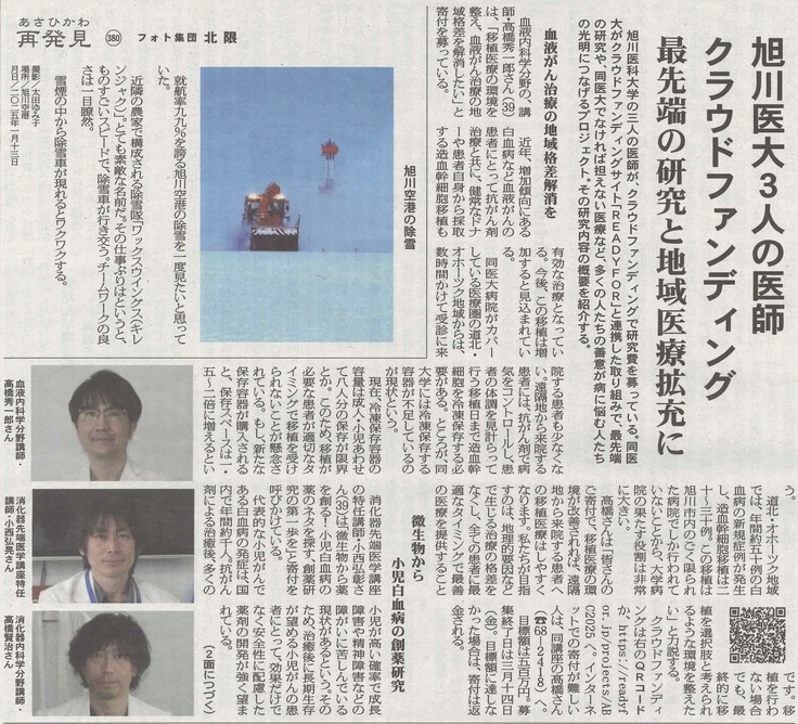 あさひかわ新聞にクラウドファンディングの記事を掲載頂きました!
