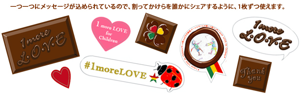 一つ一つにメッセージが込められているので、割ってかけらを誰かにシェアするように、1枚ずつ使ってもよし。プレゼントや既存の商品パッケージに貼るだけで、ガーナの子どもたちを応援する気持ちを一緒に贈ることができます。もちろん自分用にもできるデザインになっています!