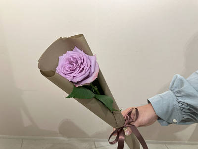 ・黄、紫、ピンクのいずれかのバラ1輪をお届けします。(ACE代表岩附セレクトの花束に使用している花色です。3色からランダムでお届けします。)